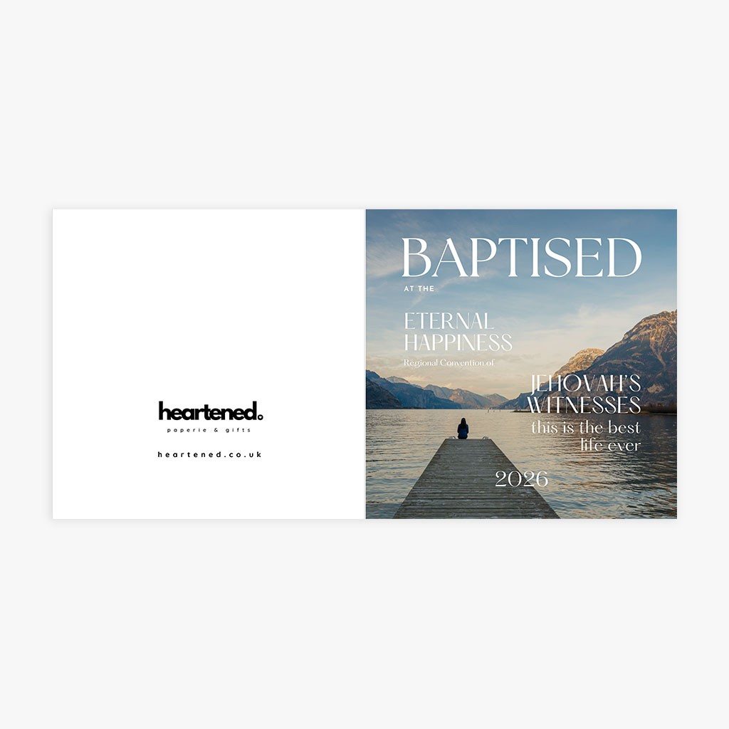 The tranquil landscape and still water create a calm, reflective feel—symbolising new beginnings, faith, and a personal spiritual journey. A beautiful way to mark such a meaningful milestone.