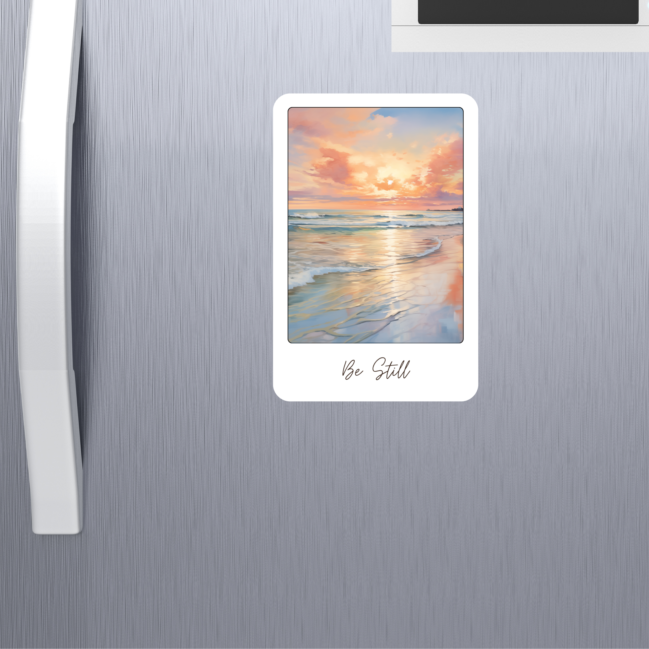 A peaceful coastal scene paired with a gentle reminder to slow down and be still. Ideal for creating a calm, reflective atmosphere in your home.