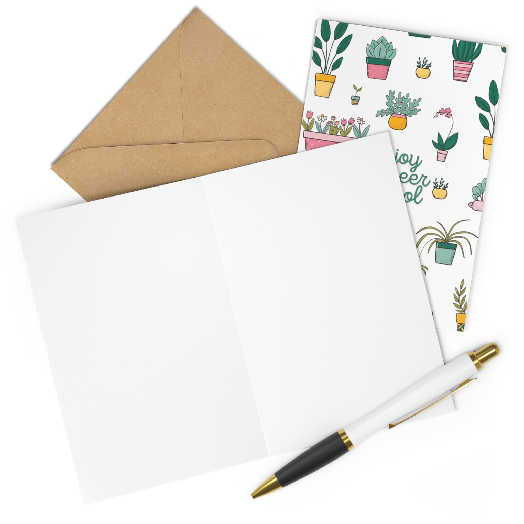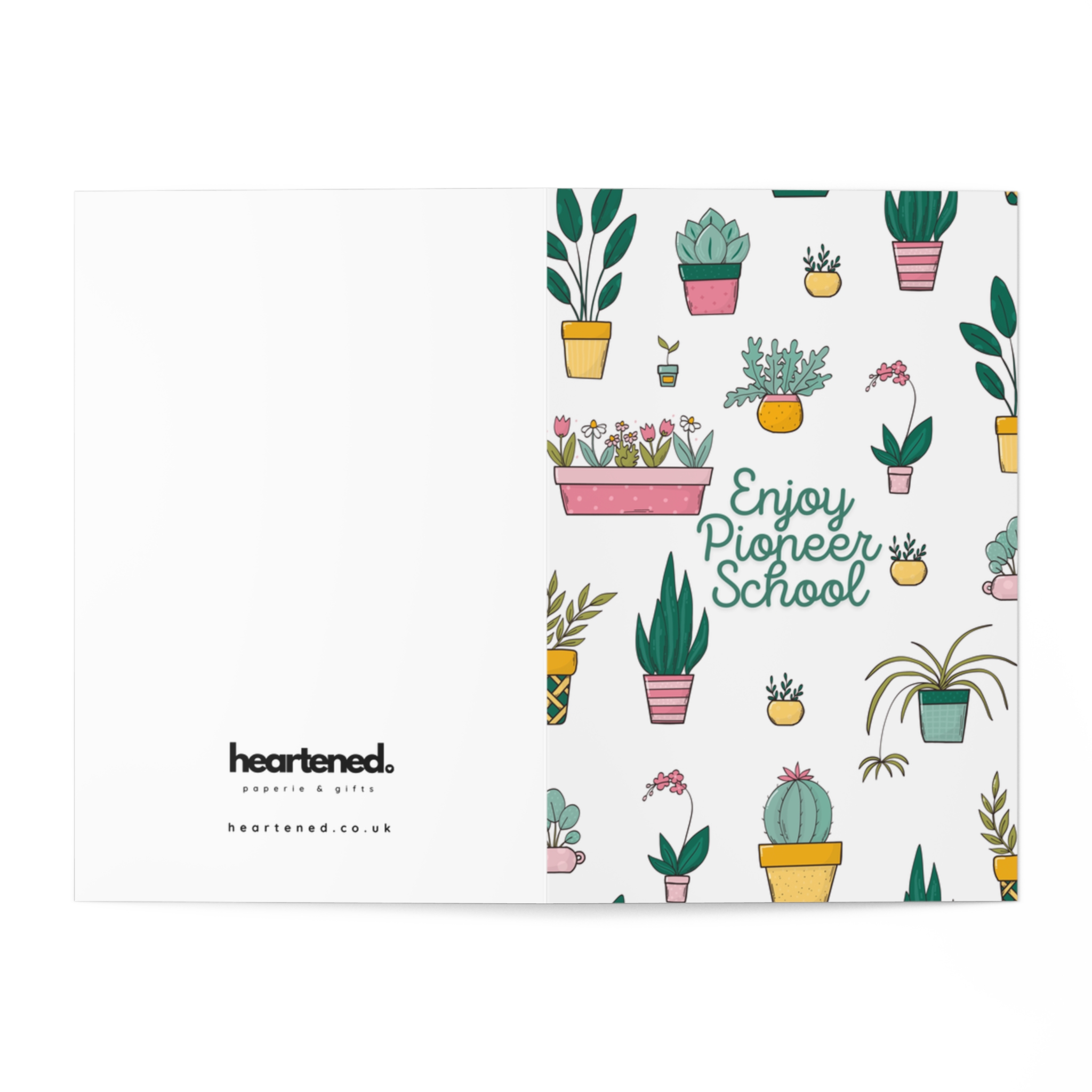 This cheerful greeting card features a playful plant illustration with the message: “Enjoy Pioneer School.”