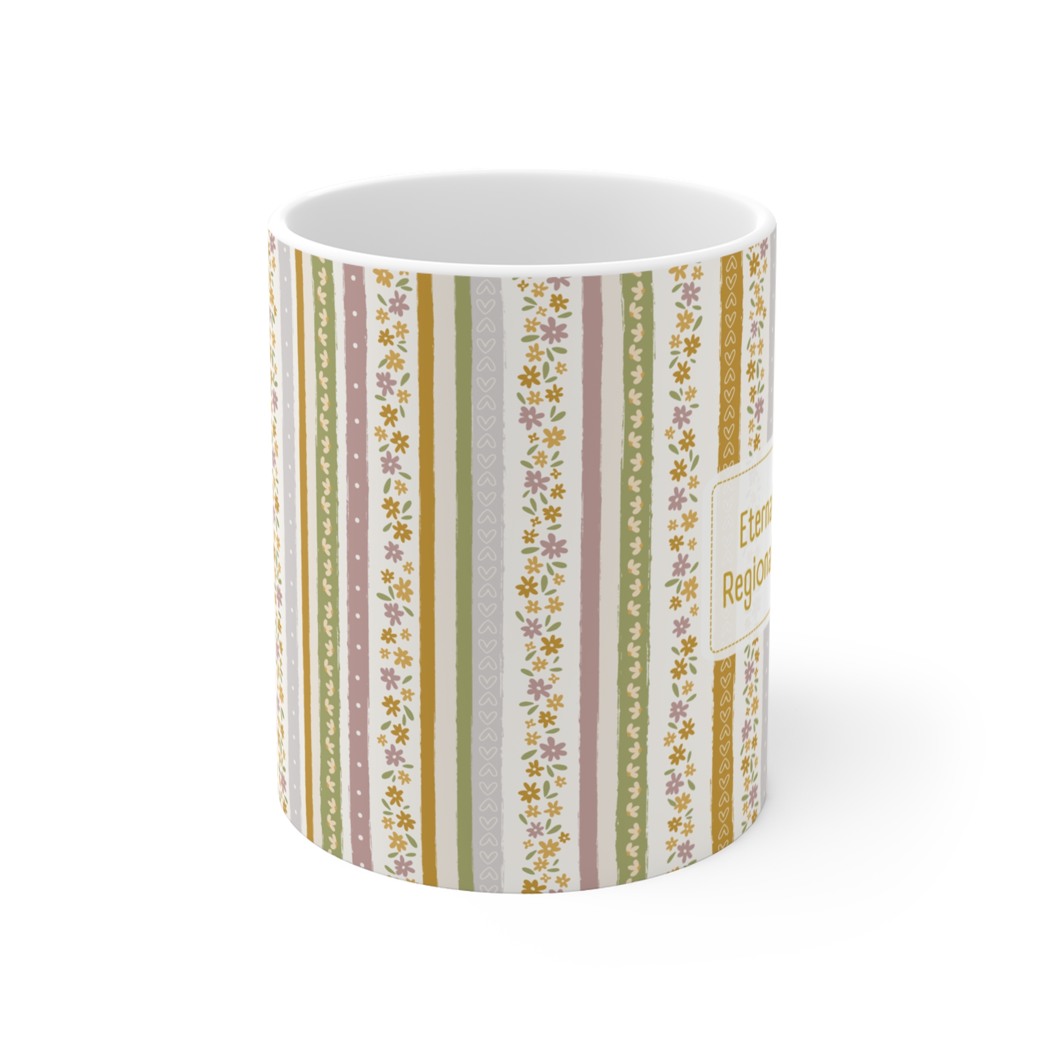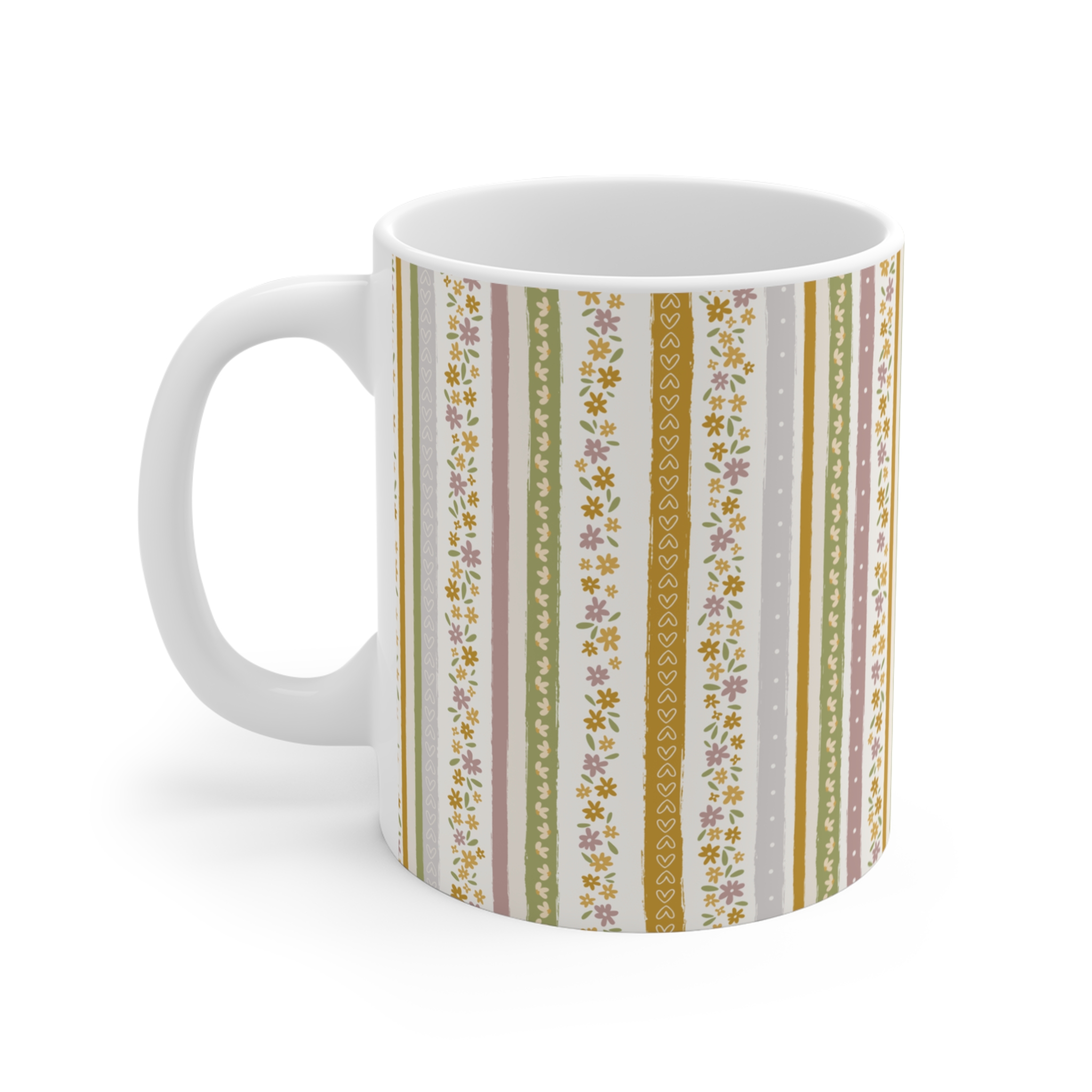 A soft and charming design featuring delicate florals and gentle stripes, this mug has a warm, comforting feel.