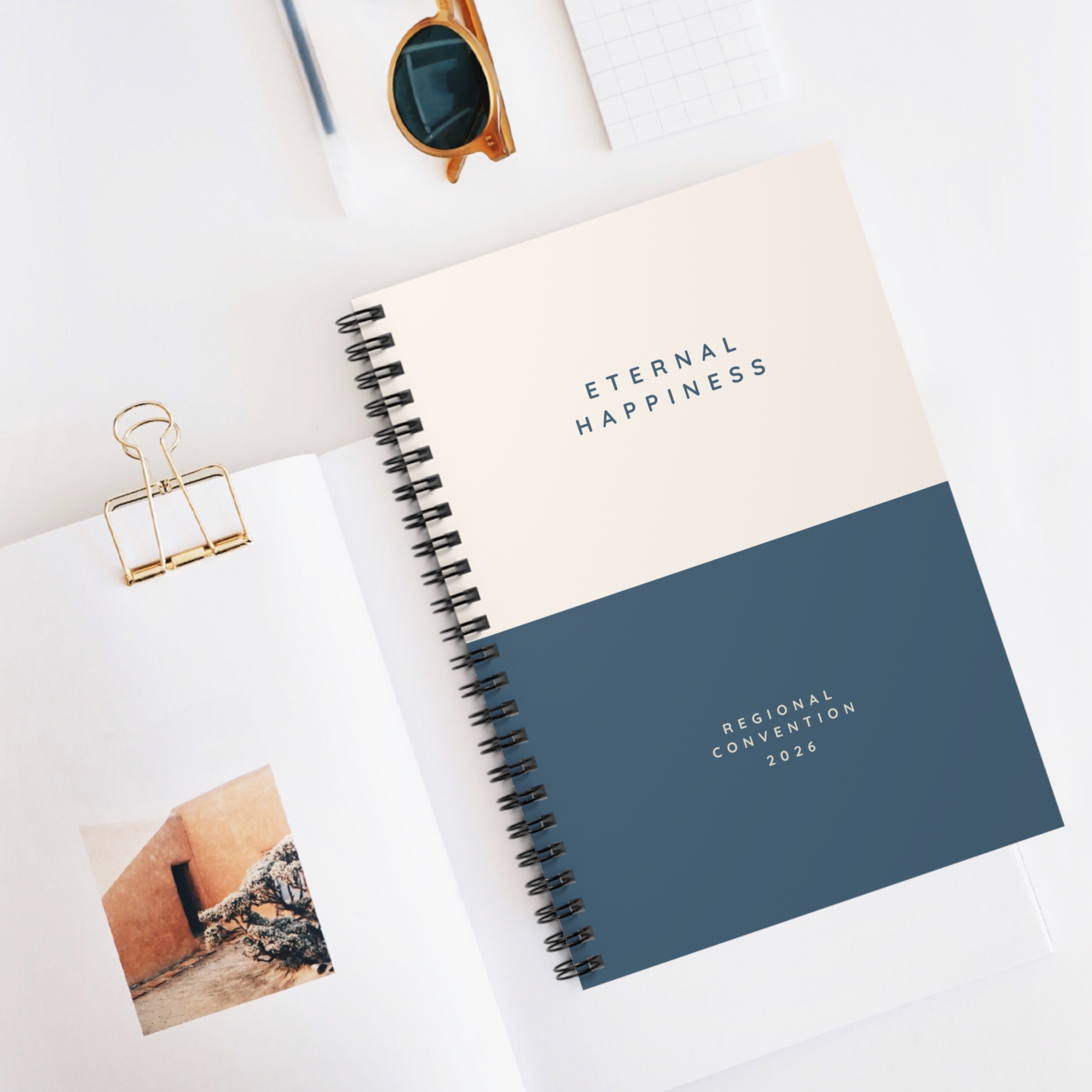 A timeless and understated gift set designed with simplicity and elegance in mind. Featuring a soft neutral colour palette with clean typography, this Eternal Happiness 2026 set includes a greeting card, mug, and spiral notebook.