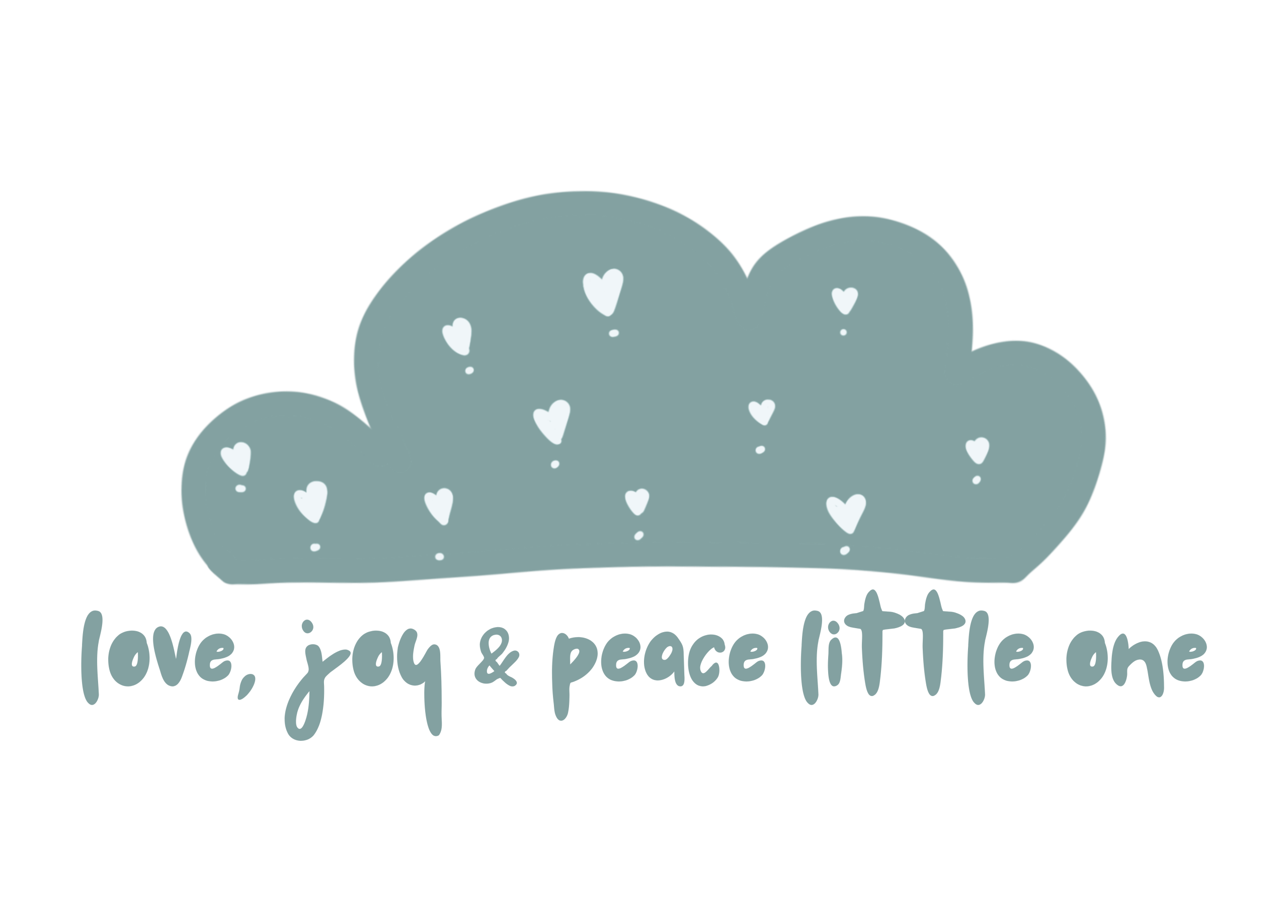 Create a peaceful and nurturing space with this soft cloud wall sticker featuring the words “Love, joy & peace little one.”