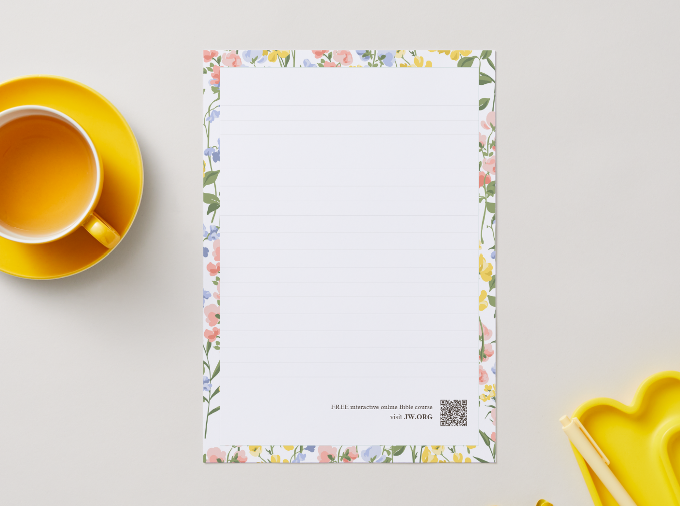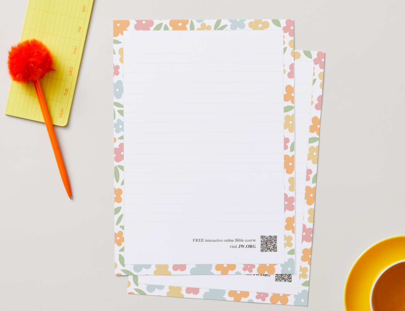 This printable set has been thoughtfully designed to support personal letter writing. Each page features a pretty floral frame and qr code link to JW.ORG , helping you naturally introduce thoughtful ideas while leaving space to write in your own words.