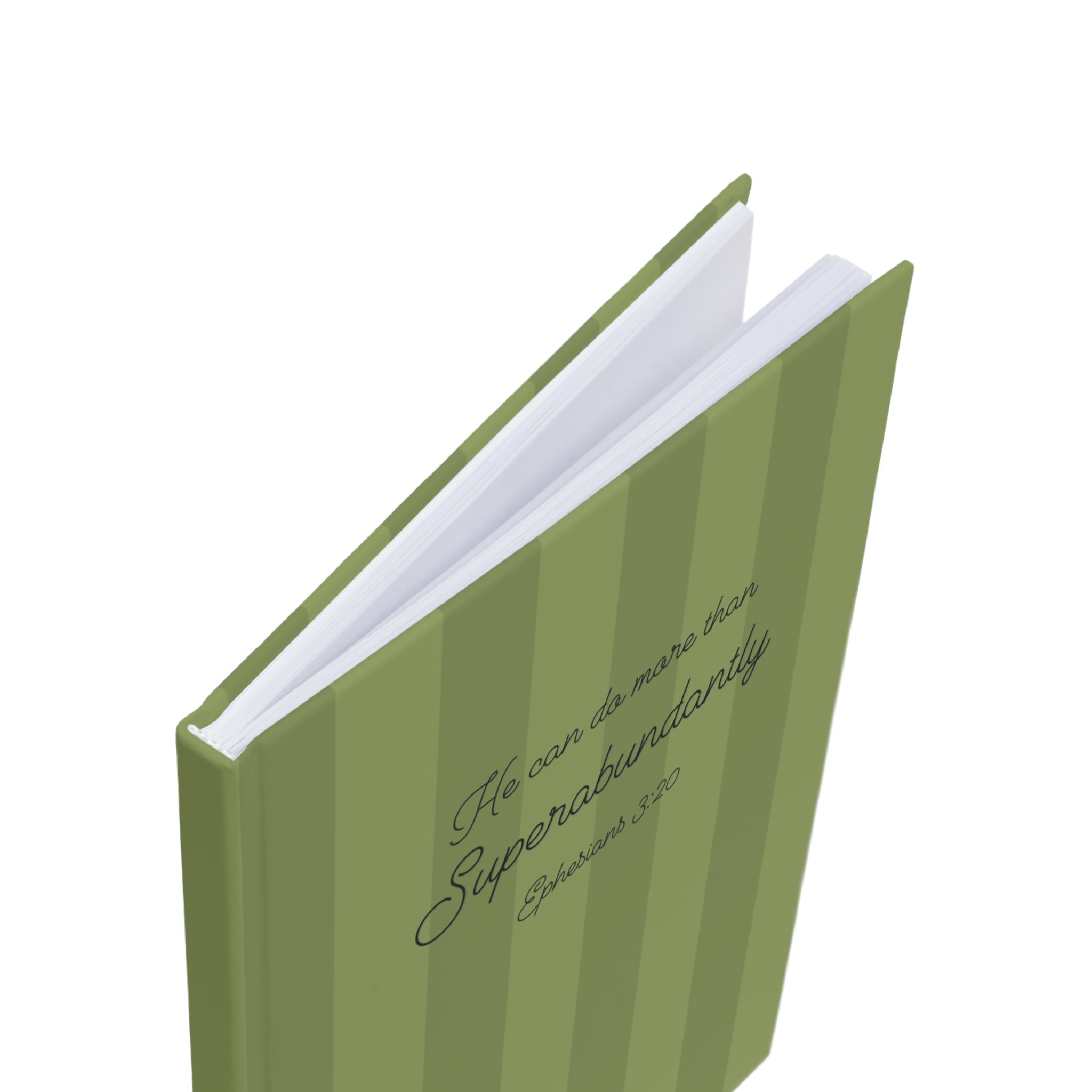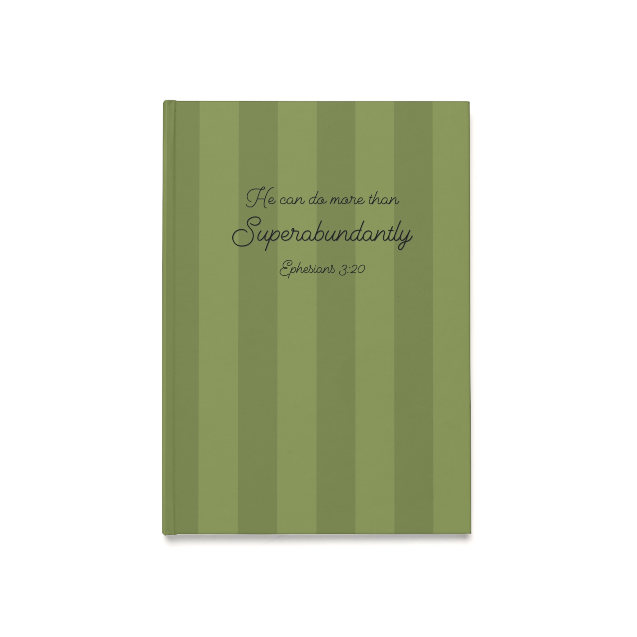 This A5 hardback journal features a simple striped design with the encouraging words “He can do more than superabundantly” from Ephesians 3:20 on the cover, making it a practical and uplifting notebook for everyday use.