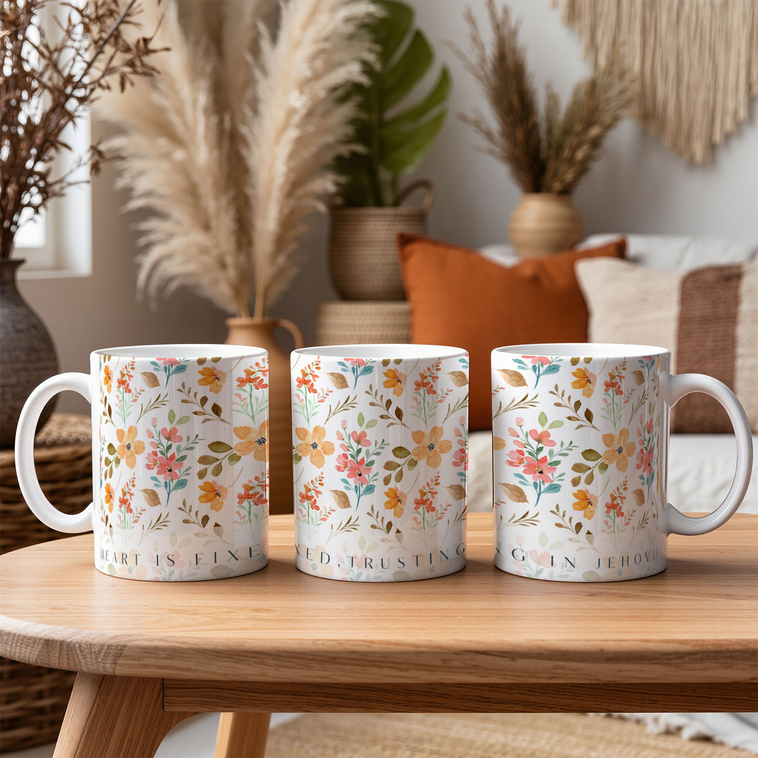 Bring a gentle reminder of faith into your daily routine with this beautiful floral scripture mug featuring the words “Trusting in Jehovah.”